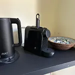 Mejora tu estancia con la cocina bien equipada del alojamiento, amueblada con tetera, nevera y cristalería para tu comodidad.